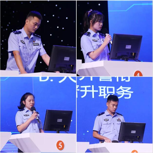 复赛设有团队赛和个人赛,团队赛共有12支队伍,每支队伍由3人组成参赛;个人赛有12名选手。比赛采用现场答题的形式进行,经过先声夺人(必答题)、争分夺秒(抢答题)、谁与争锋(案例分析题)三轮激烈比拼,最终选出6支代表队和6名民警进入决赛,决赛将于11月初举行。